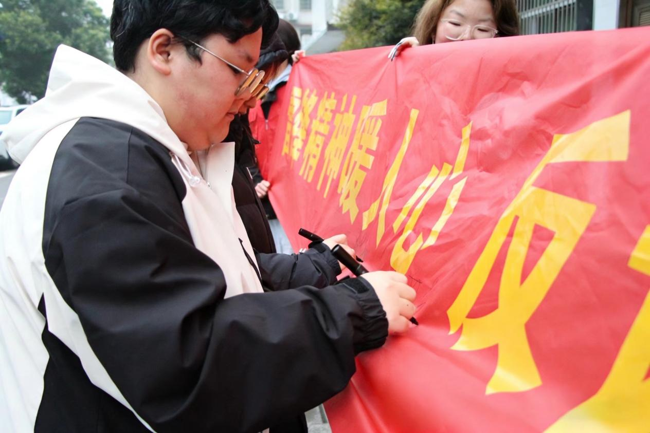 签名承诺筑防线:一笔一画签下防骗决心。校园内拉起的“雷锋精神暖人心 反诈防骗不放松”红色横幅吸引了一大批学生参加签名承诺活动。志愿者们向校内学生发放防非宣传手册,结合真实案例讲解“刷单返利”“校园贷变种”“游戏交易诈骗”等常见套路,邀请同学们在横幅上签名留念。学生纷纷驻足参与,提笔签下自己的名字,也签下一份“不轻信、不转账、多核实”的防骗决心。活动现场气氛热烈,参与活动的刘同学表示:“签名不仅是一种形式,更是对自己财产安全的一份责任。”