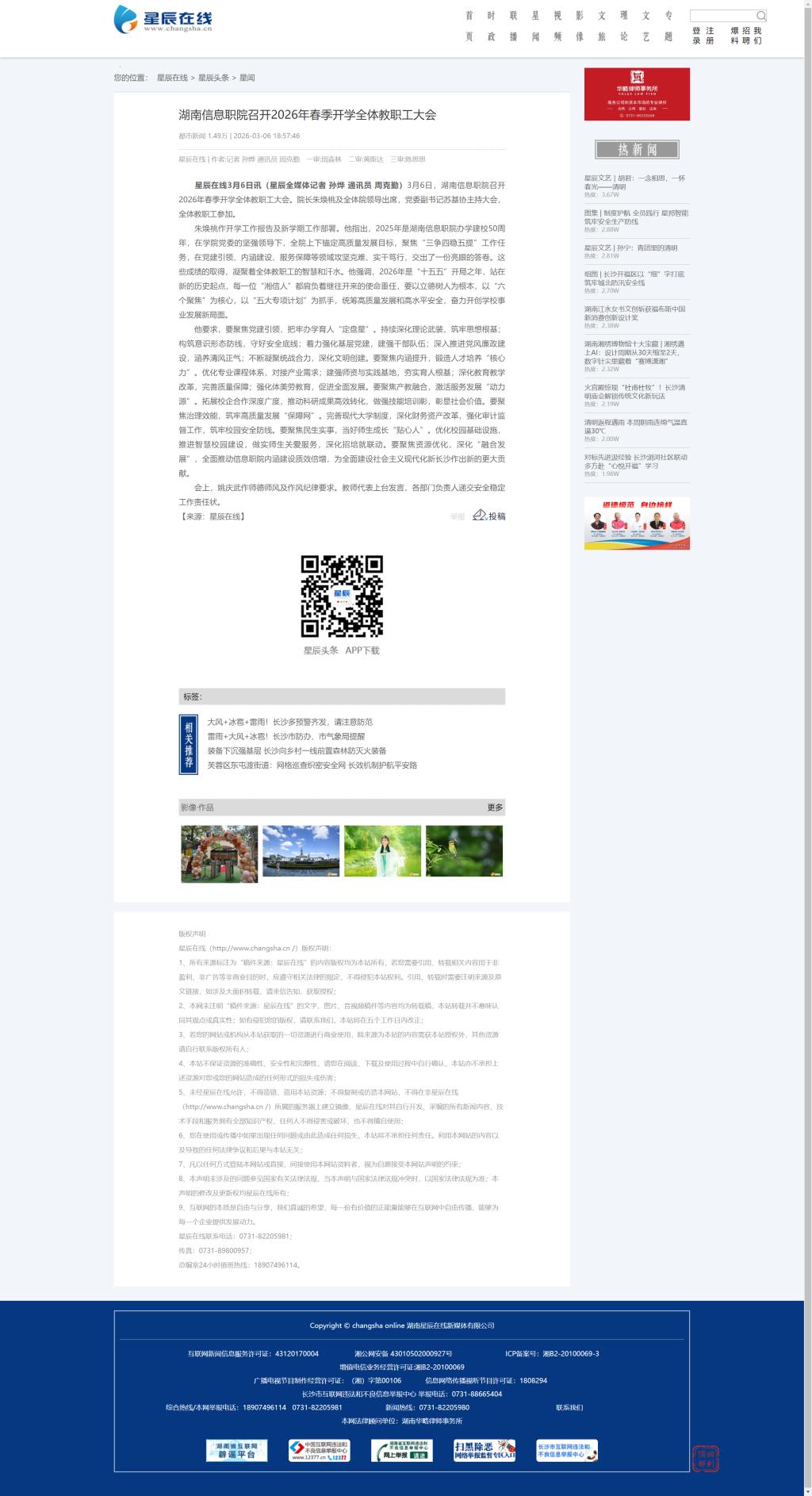 3月6日,星辰在线发布《湖南信息职院召开2026年春季开学全体教职工大会》